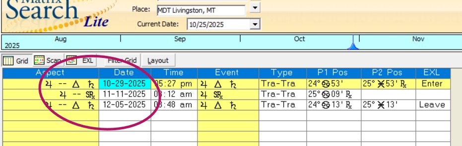 Then another trigger or prompting to keep progressing on your adventure of freedom and new life accomplishments (November 12th) and that cycle keeps playing out all the way to the last Mercury/Uranus aspect on December 10.