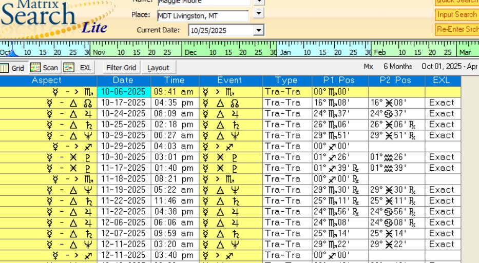 Mercury also sextiles Pluto, which is extremely positive for negotiating money – setting up accounts, coming to a truce or an agreement. It is positive for paperwork, documents, judgments, and opinions of others which appear fairly correct and just. The strongest dates for these are October 30 – November 17, then December 1 – 12, 2025.
