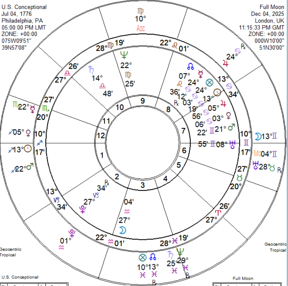 U.S. Conceptional 1776 chart and the Full Moon in Gemini December 4, 2025