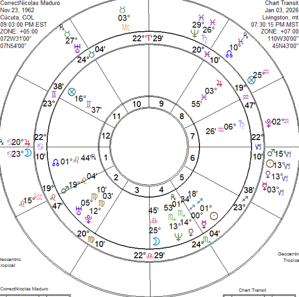 Corrected Birth chart of Maduro and Full Moon January 3, 2026