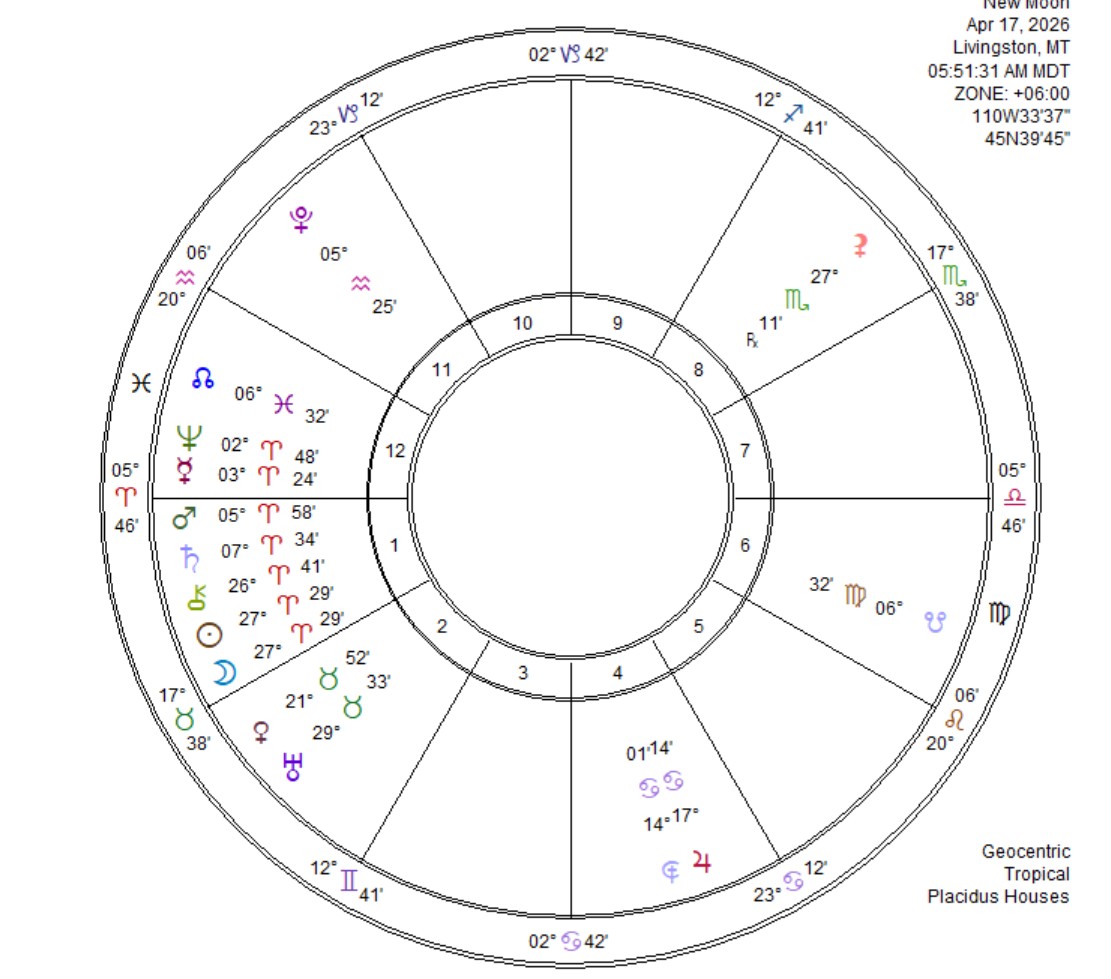 The past New Moon square Jupiter and Hades created a bit of an extreme escalation in getting one’s needs met. A more assertive than usual energy permeated people’s desires. Let’s review the last New Moon on April 17 quickly….